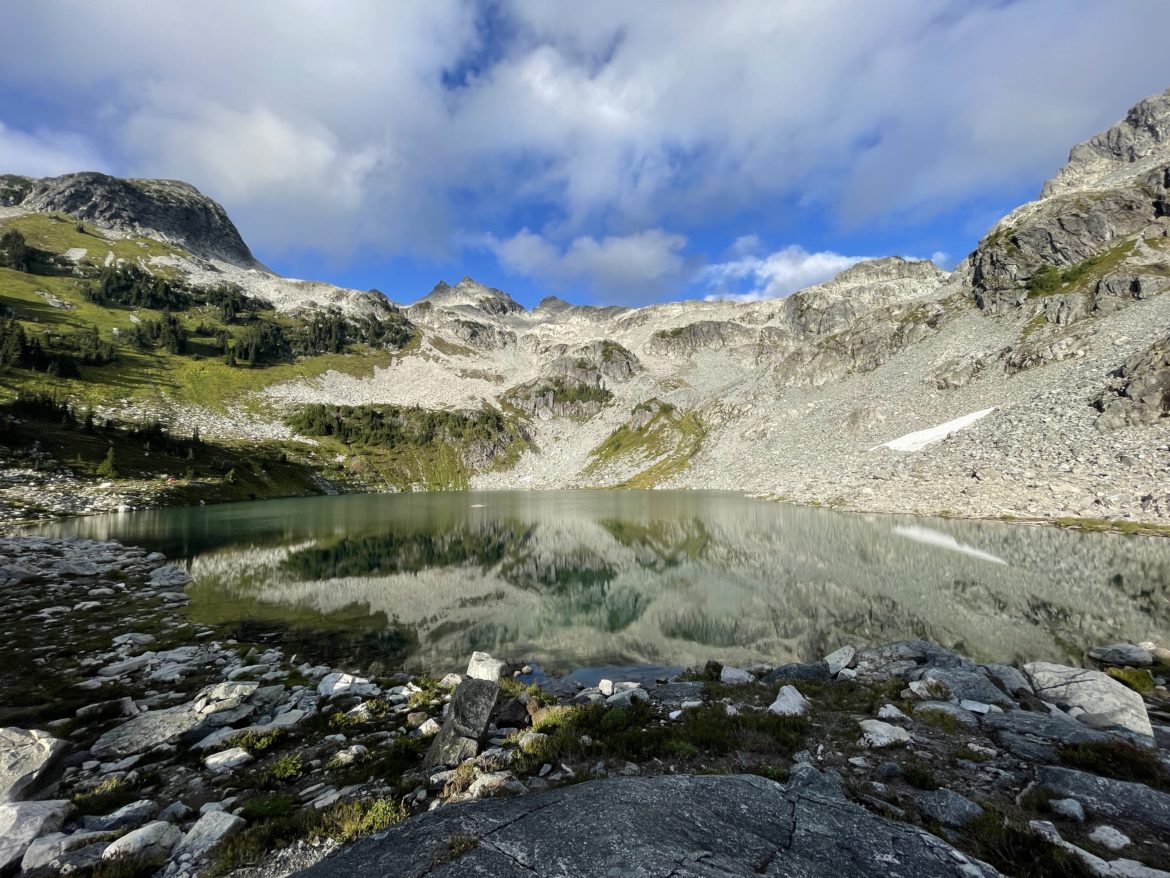 The next morning, we summited Tricouni Peak going through endless boulder fields with some snow banks. Cairns helped lead the way where trails were unnoticeable.